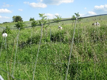 Auch hinter der zweiten, umzäunten Obstplantage wuchs herrlicher Weizen. Leider gab es aber auch hier keine Koppel. Resigniert kehrte ich um. Ich überlegte, wo die Pferde noch sein konnten. Da entdeckte ich in der Umzäunung der Obstplantage eine Art Eigenbau-Tor, das auf beiden Seiten mit einem stabilen Draht provisorisch befestigt war. Auf dem Hinweg war mir das gar nicht aufgefallen. Vielleicht meinte der Bauer gar keinen Koppeldraht, sondern diesen hier?! Es war kein Mensch in der Nähe zu sehen. Also öffnete ich mutig das Tor zur Obstplantage, schlüpfte durch die Öffnung und verschloß das Tor hinter mir wieder mit dem Draht, damit die Pferde, wenn sie hierher kämen während ich mich noch auf dem Weg nach oben befand, nicht ausbüchsen konnten. Und weil der Bauer es gesagt hatte.