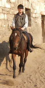 ist der erste Kandidat, über den ich erzähle. Er "geistert" hier mehrfach auf den Internetseiten herum... Er wohnt in Hnanice, im Böhmischen Paradies Tschechiens.Also, meine allererste Reitstunde verbrachte ich auf ihm. Und wie war ich froh, als die wieder vorbei war, ohne daß ich heruntergefallen war! Und alles tat mir weh... Was mich damals aber beeindruckt hatte, war seine Geduld mit der er mich eine Stunde lang auf seinem Rücken (er)trug. Eigentlich hatte er das doch als größeres und viel stärkeres Lebewesen gar nicht nötig? Und doch tat er es willig. Deshalb ging ich nach ein paar Wochen wieder hin; und später wieder. Damals war er 15 Jahre alt, ein "Halbblut" (Vater war Vollblut). Unterdessen fing ich an, auch zu Hause Reiten zu lernen. Dadurch klappte es beim nächsten Mal auf Aramis schon besser, so daß man die Longe entfernte und mich allein auf dem Platz loslies. Allerdings passierte nicht mehr viel, nachdem die Longe ab war: Es gibt vermutlich kein langsameres Pferd, als Aramis. Außerdem ist er Weltmeister im Abkürzen. Aramis war lange Zeit nie in der Nähe einer Ecke des Reitplatzes - jedenfalls nicht mit mir. Je mehr ich selbständiger reiten lernte, desto mehr hatte ich meine Probleme auf ihm. Aber ich wollte kein anderes Pferd, wenn wir in Tschechien waren. Schließlich war er mein erstes Pferd! Außerdem mögen wir beide uns! Er behandelte mich (wenn ich nicht auf seinem Rücken saß) fast von Anfang an besonders nett. Das war weniger mir, sondern mehr den anderen dort aufgefallen. Außerdem war er über die Maßen beleidigt, wenn ich an einem letzten Tag vor meiner Heimreise auf einem anderen Pferd ritt. (Die Reitlehrerin wollte mir hin und wieder ein Erfolgserlebnis auf einem anderen Pferd verschaffen.) An anderen Tagen tolerierte er das 'mal. Nicht am letzten Tag! Dann konnte es eine Stunde dauern, bis ich mich wieder bei ihm "eingekratzt" hatte. Nun tue ich soetwas grundsätzlich nicht mehr. So ein Abschied ist ja so jedesmal schon schwer genug. Also ritt ich dort von nun an ein Pferd, das mich maßlos überforderte. Aber ich wollte es ja so. Sporen lehnte ich auch ab, um ihm nicht weh zu tun. (Er wird sonst von den selbständigeren Reitern immer mit Sporen geritten.) Die Gerte benutzte ich nicht, weil ich dachte, daß meine Reiterhilfen noch so unsicher sind, daß mir der Gerteneinsatz nicht "zusteht". So galoppierten meine Tochter und ihre Freundin frei, während ich in Hnanice immer an die Longe mußte, da ich auf Aramis nicht einmal im Trab einen Zirkel reiten konnte. Daraus machte er nämlich sofort von sich aus die Bahnfigur "Zirkel ganz schnell und extrem verkleinern". Der "Durchbruch"Wenn ich versuchte, mehr aus ihm "herauszuholen", konnte es mir passieren, daß er entgültig stehen blieb. Einmal mußte ihn sogar die Reitlehrerin während des Reitunterrichts korrekturreiten, weil gar nichts mehr ging. Da half dann schon nur noch sehr starkes Treiben ihrerseits. Mir tat allein das Zusehen weh. Ihn, Aramis juckte das scheinbar gar nicht.Eines Tages blieb er wieder mitten in der Reitbahn mit mir stehen. Diesmal setzte ich endlich die Gerte, die ich in jeder Reitstunde in meiner Hand trug, ein. Sicher nicht schmerzhaft, aber deutlich. Oh, das kannte er von mir nicht! Er ging hinten hoch, ich wiederholte sofort den Gerteneinsatz. Währenddessen trieb ich so stark ich konnte. Als ich fast nicht mehr konnte, setzte er sich langsam und widerwillig in Bewegung. Alles an ihm wollte mir sagen: "Also recht ist es mir nicht! Aber ich geh' dann 'mal." Ich gab sofort nach (ich hätte ohnehin nicht mehr gekonnt). Und - unglaublich - der Rest der Reitstunde war herrlich: Wir sind im Trab und im Galopp zum ersten Mal selbständig auf einem völlig runden Zirkel geritten! Am nächsten Tag beeilte er sich sehr, um das Stallgebäude herum auf den Reitplatz zu gehen. Kaum waren wir dort angekommen, blieb er stehen. Er wollte wissen, ob das am Vortage nur eine Ausnahme war, oder ob das Gleiche heute wieder passieren würde! Es passierte das Gleiche, mit dem Unterschied, daß er viel früher einlenkte und losging. Am übernächsten Tag das gleiche Spiel, mit noch weniger Krafteinsatz. Bereits in diesen Tagen haben Aramis und ich zusammen mehrmals die Ecken des Reitplatzes besucht! Seitdem hat sich vieles verbessert, trotzdem muß ich ihn mit noch zuviel Kraftaufwand reiten. Aber Sporen möchte ich nicht verwenden - ich versuche es weiter mit Lernen und Geduld. Heute benutze ich übrigens überhaupt keine Gerte mehr. Ach ja: Auch in der Reitbahn verwende ich viel Lob. Seitdem haben wir nochmals große Fortschritte gemacht. Vor allem in Bezug auf Leichtigkeit beim Reiten. Bald sind wir bestimmt auch beim Reiten ein ideales Paar! Was habe ich bei Aramis gelernt?Vor allem, daß der Umgang mit Pferden sehr schön sein kann. Aber auch, daß es nicht immer nur mit "Sanftheit" und Nettigkeiten geht. Manchmal muß man sich tatsächlich (überlegt!) beim Pferd durchsetzen. Man darf nämlich nicht vergessen, daß das Pferd auch von mir erwartet, daß ich mich am Gestalten der Rangordnung beteilige. Tue ich das nicht, legt es die Rangordnung allein fest. Das kann beim Reiten offensichtlich eine andere sein, als auf dem Boden! Zögere ich das lange hinaus, muß ich später eine Rangordnung ändern, an die das Pferd lange gewöhnt ist. Das ist dann schwieriger.Übrigens hatte mein Loben und Streicheln während des Reitens vor unserer "Auseinandersetzung" kaum etwas bewirkt. Jetzt, nachdem Aramis mich offensichtlich auch beim Reiten als "von etwas höherem Rang" akzeptiert, hat mein Lob wohl mehr Gewicht. Auf den Gerteneinsatz bin ich nicht gerade stolz. Vermeiden hätte ich das nur gekonnt, wenn ich von Anfang an mit mehr Bestimmtheit meine Vorstellungen bei Aramis durchgesetzt hätte. Leider war ich damals noch längst nicht soweit. |