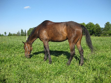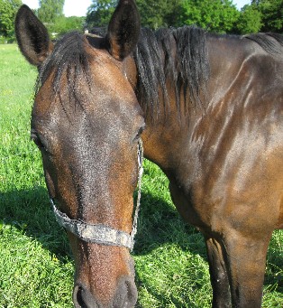 Das ist er also, das "wirklich problematische Pferd". Ikarus ist ein Halbblut, sein Vater war ein Vollbluthengst. Im Umgang empfinde ich ihn als recht angenehm. Beim Führen versucht er die Führung zu übernehmen, und will schneller sein, als der Mensch neben ihm (macht er bei mir aber nicht). Die richtigen Probleme kommen erst beim Reiten: Ikarus steigt desöfteren. Und er ist insgesamt sehr sensibel und übelnehmerisch, was die Hilfen betrifft. Oft bleibt er einfach stehen.