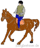 Wir hatten gerade eine Platzrunde erfolgreich hinter uns gebracht. Ein paar Minuten später, nachdem der (neue) Reitlehrer sein Pferd vorbereitet hatte, sind wir zu unserem ersten gemeinsamen Ausritt aufgebrochen. Ich war ziemlich aufgeregt und habe mit dem Schlimmsten gerechnet. Aber es kam nicht schlimm. Es war zwar schon ganz gut, daß sonst niemand am Ausritt teilnahm. So konnte mich der Reitlehrer vorausreiten lassen, um mir von hinten Hinweise zu geben. Ikarus war anfangs nämlich auch recht aufgeregt. Außerdem kann ich nicht behaupten, daß ich die ganze Zeit lang die Führung innegehabt hätte: Aus der ersten Galoppstrecke machte er eine Galopprunde, weil er wohl der Meinung war, daß uns die kleine Strecke noch nicht genügen konnte. Dann überließ er aber mir wieder die Führung. Als wir das letzte Stück bis zur Brücke im Trab zurücklegen wollten, ist Ikarus sofort angaloppiert. Erst vor der Brücke ließ er sich wieder durchparieren. Dann hatte ich wieder die Führung.In beiden Fällen war genug Platz und niemand in der Nähe, deshalb konnte ich das erlauben. Ich wollte ihn vor allem nicht mit Gewalt anhalten, denn es sah aus, als wenn ihm das Freude machte. Außerdem hätte gerade Gewalt in einem solchen Moment vielleicht wieder dazu führen können, daß Ikarus sich aufregt und dann steigt. Genau das möchte ich ja vermeiden, denn damit wäre das Vertrauen, welches gerade zwischen uns entstand, sofort beiderseits zunichte gemacht worden. Deshalb bin ich der Meinung, daß wir beide das ganz gut gemeistert haben. Auch der Reitlehrer sagte, daß man Ikarus ruhig für ein paar Momente seinen Willen lassen darf, wenn man danach die Führung zum erforderlichen Zeitpunkt wieder übernehmen kann. Hinterher habe ich mich über mich selbst gewundert: Ich hatte gar keine Angst, da ich davon überzeugt war, daß er nichts Böses im Schilde führte. Für mich sah es so aus, als wollte er einfach noch ein wenig laufen. Er blieb in einem relativ ruhigen, wenn auch schnellem und kraftvollem Galopp. Die ganze Zeit hatte ich mein Vertrauen zu Ikarus nicht verloren! Die späteren Ausritte gingen schon viel besser. Für mich pariert er nun dort durch, wo ich das möchte (ich glaube nicht, daß mein reiterliches Können dafür verantwortlich ist...). Wir zwei - ganz allein!Im Winter gibt es Zeiten, wo auf dem Reiterhof nicht viel passiert. Einmal war auch kein Reitlehrer da, so daß ich Ikarus ausnahmsweise allein auf dem Platz reiten durfte. Da er einige Zeit nicht mehr geritten worden war, longierte ich ihn vorher etwa 20 Minuten, wobei ich tunlichst darauf achtete, eine ruhige Atmosphäre zu schaffen, und keinen Druck zu erzeugen. Da ich wirklich allein war, mußte ich hoffen, daß Ikarus stehen blieb, während ich die Dinge forträumte, die ich nach dem Longieren nicht mehr benötigte. Er blieb aber nicht stehen: Er folgte mir auf Schritt und Tritt, wohin ich auch ging! Die Reitstunde haben wir zwei dann auch ganz gut gemeistert; ich denke, beide waren wir recht zufrieden.Unterdessen reiten wir beide, Ikarus und ich, regelmäßig und gern allein aus. Wir sind die einzigen auf dem Hof, die das dürfen. Denn jeder sieht, daß zwischen uns eine besondere Beziehung entstanden ist, die auf sehr großem Vertrauen beruht, so daß uns zusammen bestimmt nichts passieren kann... Zusammen haben wir nicht einmal Angst vor Traktoren, die im Wald laut auf uns zukommen. Ja nicht einmal knisternde Plastiktüten, die vom Wind über den Weg geblasen werden, können uns erschrecken!! Über dieses Pferd könnte ich wohl ein ganzes Buch schreiben. - Aber wer liest das dann noch? Nur deshalb komme ich jetzt zum Schluß: Ein vorläufiges(?) ErgebnisInzwischen fällt das Wort "Schlachthof" im Zusammenhang mit Ikarus nicht mehr. Der neue Reitlehrer nimmt Ikarus als Führpferd bei Ausritten. Man kann Kinder, die noch absolute Anfänger sind, und nichts weiter von Ikarus verlangen, auf ihm reiten lassen, ohne daß man irgendwelche Befürchtungen haben muß. Ikarus ist wieder ein "richtiges" Pferd und in die tägliche Arbeit integriert! Man kann ihn jetzt mit Gerte reiten. Als mir ein Reitlehrer das erste Mal eine Gerte brachte, ist Ikarus beim Anblick derselben in Panik zur Seite gesprungen.Unterdessen (Sommer/Herbst 2007) ist er sogar das beliebteste Pferd auf dem Hof. Was sich wirklich nie ändern wird: (Fach)Leute, die seinen "Willen brechen" wollen, die ihn bestrafen für Dinge, für die er nichts kann, die beim Reiten Dinge verlangen, die sie selbst gar nicht richtig können und ihn deshalb schlagen oder treten, für die wird Ikarus ein gefährliches Pferd bleiben.