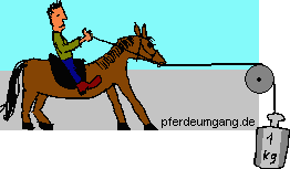 Wir kennen seitwärts weisende Gewichtshilfen, die wir - etwas fortgeschrittener - dem Pferd zum Abwenden nach rechts oder links geben. Solange wir das noch nicht konnten, mußte sich das Pferd noch mit Schenkel und Zügel begnügen. Etwas anders geartet sind vorwärts treibende Gewichtshilfen:Bislang haben wir die Schaukelbewegung des Pferdes, vor und zurück, uns zuzulassen bemüht. Jetzt geht es darum, diese Bewegung nach vorn aktiv mit dem Kreuz zu unterstützen. Am besten gelingt mir das in einer Ecke, wenn ich z. B. beginne, im Schritt zuzulegen. Ich fange dann an, mit etwas stärkerem Schenkeldruck zu treiben, hole von innen, hinten etwas Schwung und "werfe" mich ganz leicht nach vorn in die Bewegungsrichtung gegen den Sattel. Ganz genau im Takt des Schrittes. Dies verstärkt die Vorwärtstendenz und damit die Geschwindigkeit des Pferdes. Wichtig: Man darf dies nicht mit zu großem Schwung oder wirklichem Krafteinsatz tun. Die Formulierung "sich dagegen werfen" soll nur die Art meiner Bewegung verdeutlichen, nicht den Kraftaufwand. Das Pferd würde sonst um die Erhaltung seines Gleichgewichts und seines Rhythmus' bemüht sein müssen, und deshalb eher langsamer als schneller werden oder sogar unwillig reagieren. Es geht hier viel weniger um Kraft als um leichten Schwung und Rhythmus. Und zwar genau den Rhythmus des Pferdes. Der Kraftaufwand ist dabei so minimal, daß fast allein schon die Vorstellung der Bewegung ausreicht. Auch, wenn es "Kreuzanspannen" heißt, benutze ich dazu in Wirklichkeit aber vorrangig die Bauchmuskeln! Das Becken soll dabei ganz leicht nach vorn geklappt werden, so daß ansatzweise ein leichter Rundrücken im Lendenwirbelsäulenbereich entsteht. - Man schiebt das Pferd quasi im Sattel nach vorn. Und: Der Oberkörper bleibt dabei aufrecht und schaukelt nicht mit. Das schafft man anfangs nicht oder nicht lange hintereinander. Das Pferd wird dann gleich wieder langsamer. -- Nicht verzagen! - Nächste Runde wieder von vorn beginnen! Diese beschriebene Übung zu verwirklichen, ist sehr schwer und vor allem eine Frage von Konzentration und Körpergefühl. Darüber hinaus ist die Gefahr sehr groß, das Pferd in seinem Bewegungsablauf zu stören. Wollen Sie an die Sache deshalb mit sanfteren Vorstellungen herangehen, dann versuchen Sie einmal, im Rhythmus der Pferdebewegung mit Ihren Schultern nach hinten zu kreisen. Das aktiviert nämlich auch Ihr Becken im richtigen Sinne und somit die vorwärts weisenden Gewichtshilfen. Nachdem Sie die Wirksamkeit dieser Bewegung einmal gespürt haben (das Pferd wird schneller!), genügt es meist, daß Sie sich vorstellen, wie Sie Ihre Schulterblätter im Takt der Pferdebewegung auf einander zubewegen. Oder: Sie rollen die Schultern beim ersten Takt genau einmal nach hinten und lassen sie dann so stehen. Dann sitzen Sie nämlich auch gleich richtig (gerade sitzen, Schultern leicht nach hinten, Kopf hoch, ...). |