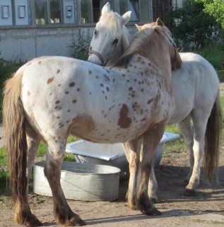 | Auch unter Pferden gibt es Freundschaften. Eine Freundschaft stellt eine ganz besondere Beziehung unter Pferden dar. Befreundete Pferde sind häufig zusammen, fressen zusammen, spielen zusammen und betreiben "soziale Fellpflege", kraulen und beknabbern sich also gegenseitig das Fell an Stellen, die sie allein nicht erreichen können. Dabei besteht auch unter solchen Freunden immer eine klare Rangordnung. Das rangniedrigere Pferd wird dem ranghöheren immer den Vortritt lassen, ihm folgen (Chef bestimmt Richtung und Geschwindigkeit), und wenigstens um eine Kopflänge (je nach Rangunterschied auch mehr) zurückbleiben. Das ranghöhere Pferd kann das andere auch von sich vertreiben. Das rangniedrigere versucht dann bald, sich dem Freund nach und nach wieder anzuschließen. |
